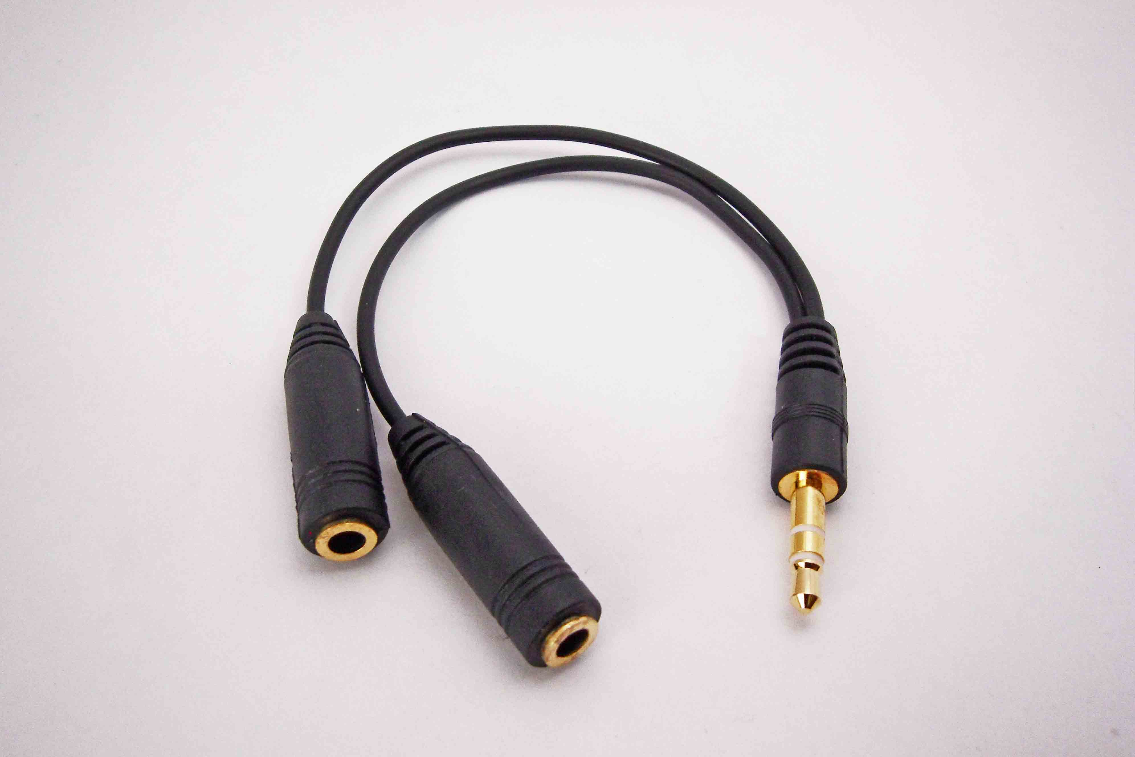 1 x 3.5mm Male to 2 x 3.5mm Female Adapter Cable. Gold Plated. Color: Black.